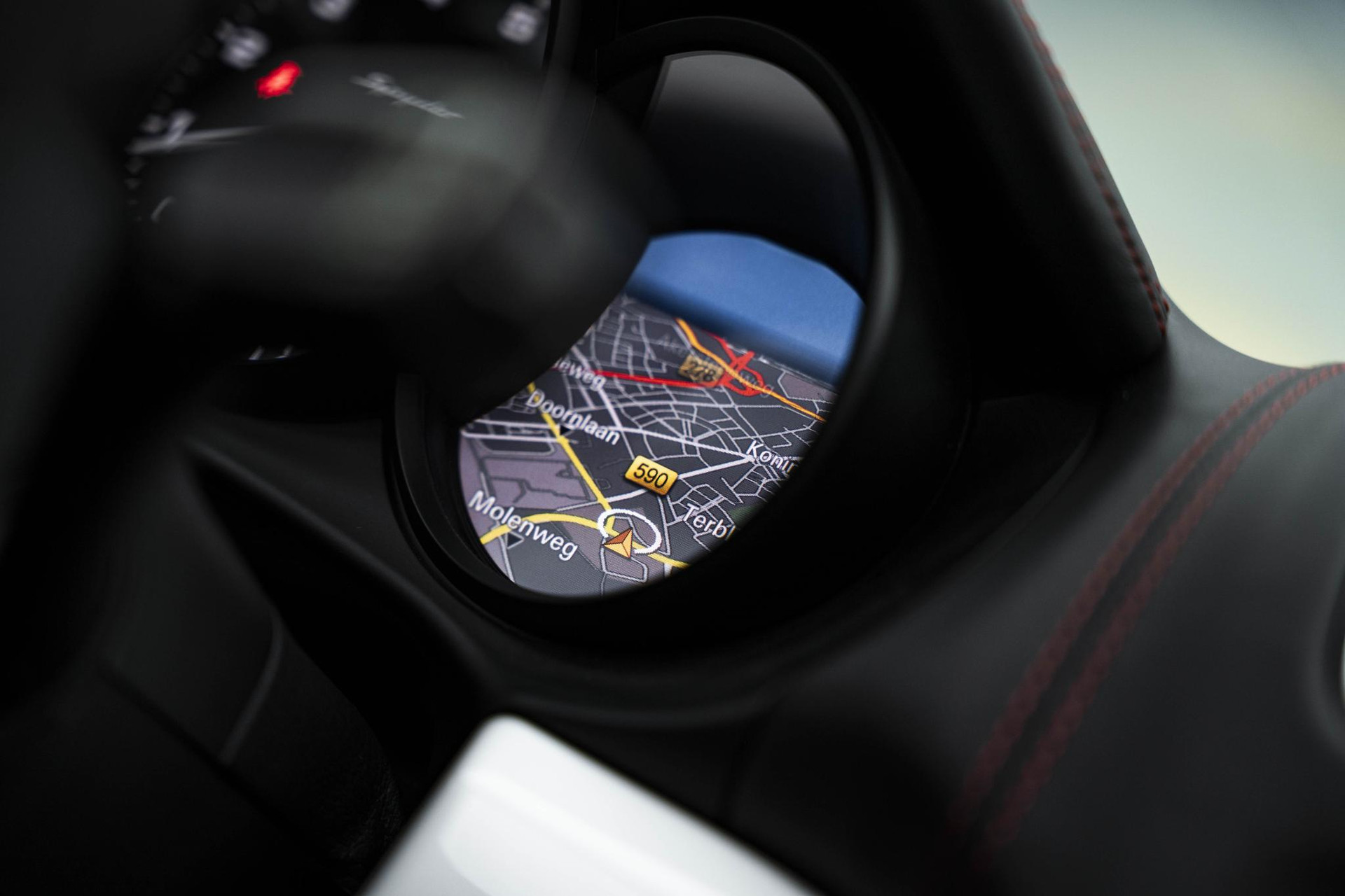Kleur interieur: Zwart leder/alcantara met karmijnrood stiksel